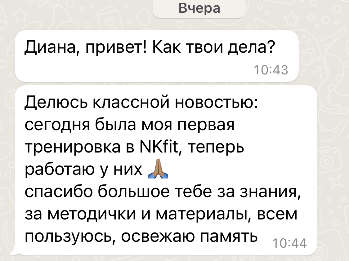 ⁃ 12 личных созвонов й (индивидуальная работа с Дианой Каримовой)