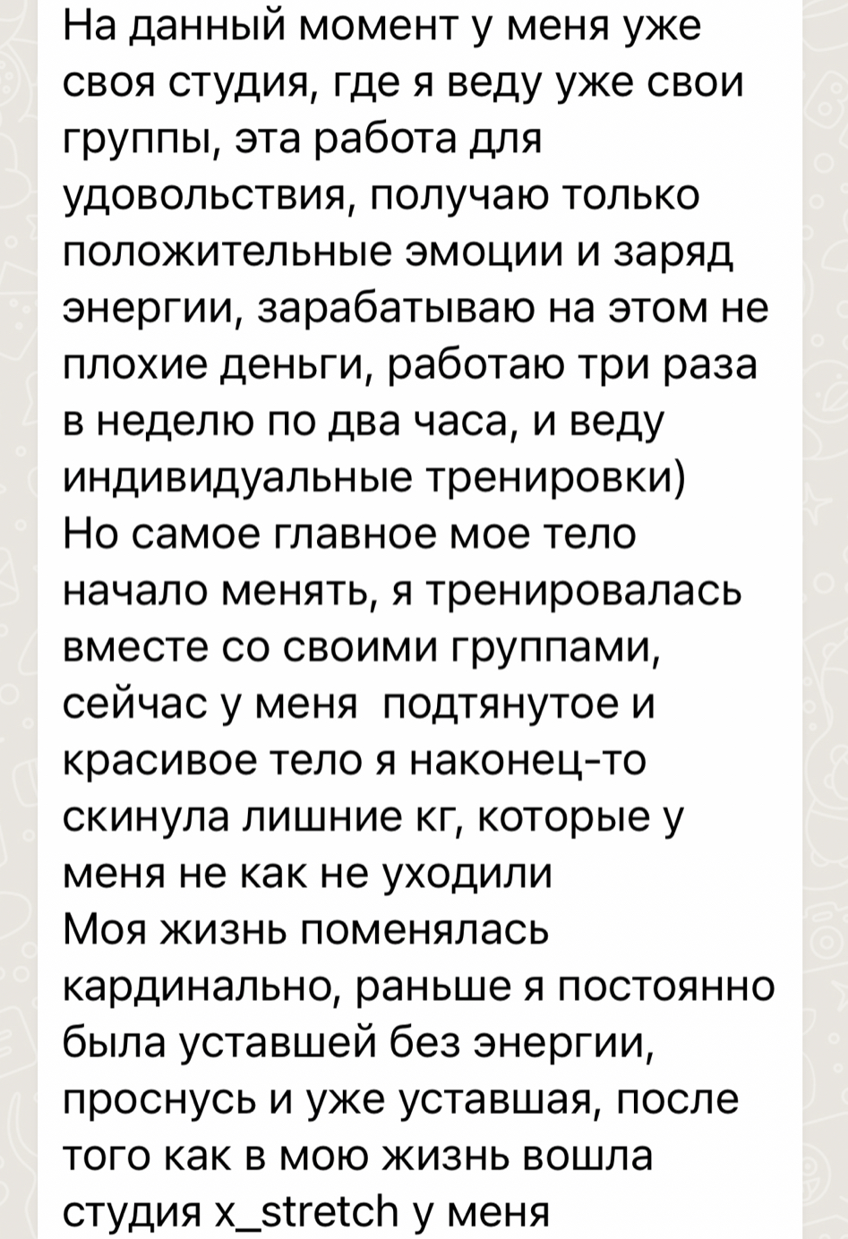 Привет, меня зовут Диана, мне 28 лет я являюсь инструктором по стретчингу уже более 6 лет. Тема здоровья меня интересовала с раннего детства, я знала основные кости и органы человека еще в начальных классах, а в школе мечтала стать кардио хирургом, пересмотрела десятки видео . ......